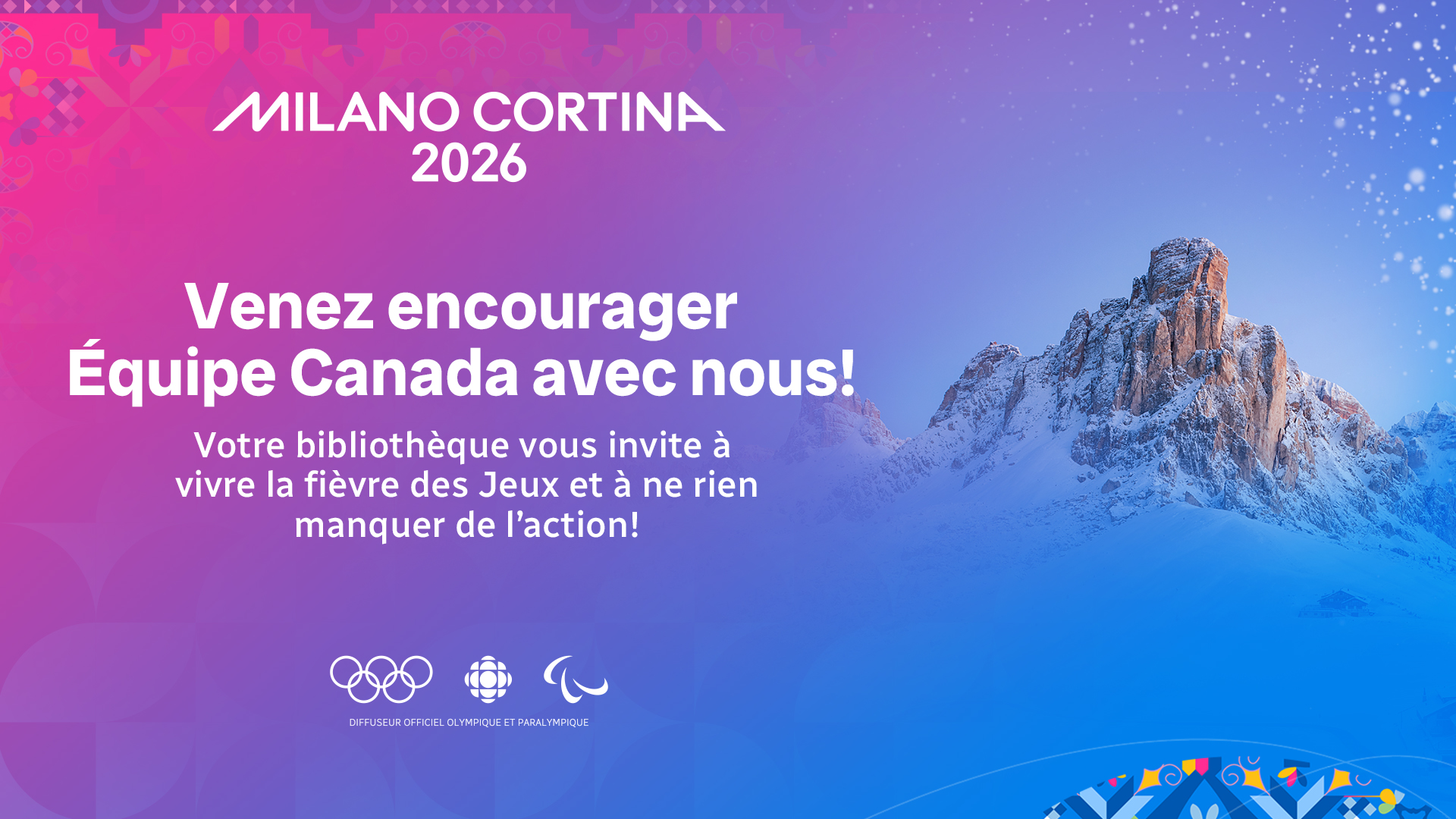 Du 6 au 22 février 2026, la Bibliothèque de Chambly vous invite à vivre l’ambiance des Jeux Olympiques d’hiver en diffusant des épreuves tout au long de la journée, pendant les heures d’ouverture. Une belle occasion de se rassembler et d’encourager les athlètes dans une ambiance conviviale.